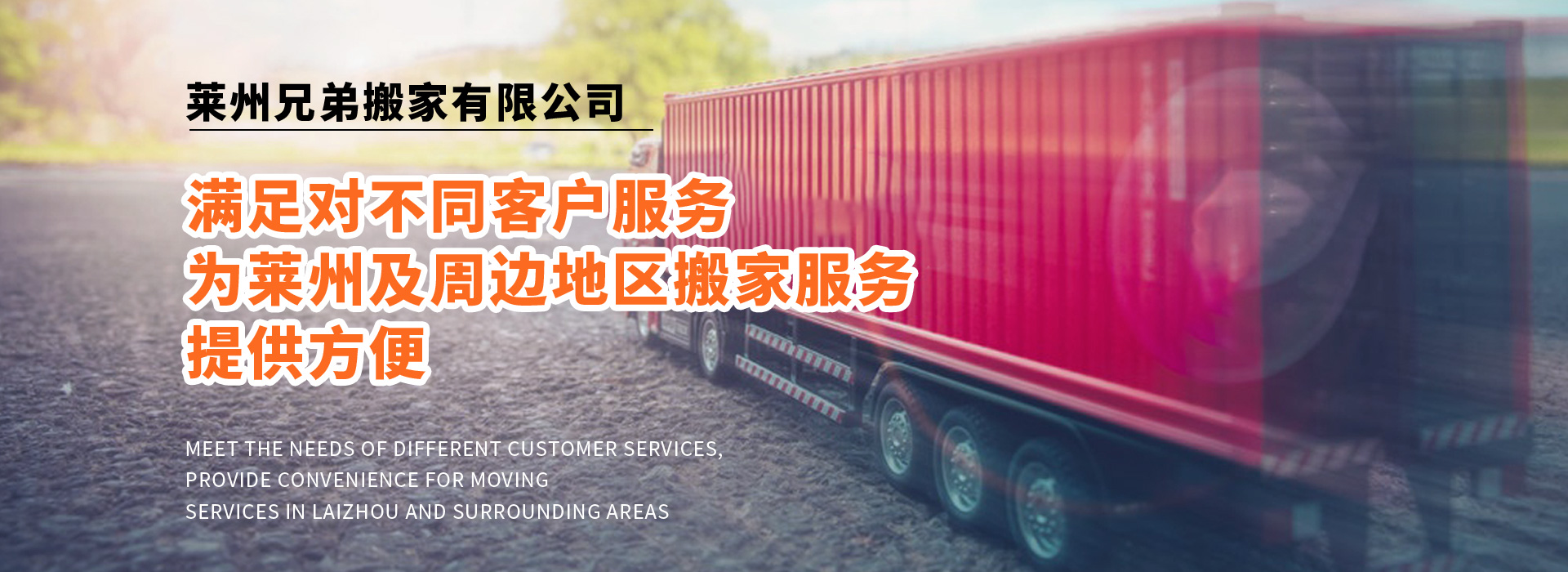 公司備有:廂式貨車、普通貨車、面包車等,滿足對(duì)不同客戶服務(wù),為萊州及周邊地區(qū)搬家服務(wù),提供方便。曾被廣大客戶評(píng)為“專業(yè)、專心、用心”的搬家公司。以合理收費(fèi)為標(biāo)準(zhǔn),以客戶滿意為服務(wù)質(zhì)量,力作萊州人的好兄弟!您的滿意就是我們的追求!歡迎各企事業(yè)單位及個(gè)人來電咨詢!